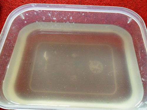 Chỉ cần lấy nước trong, cho 2 - 3 th́a chất tẩy đường vào. |